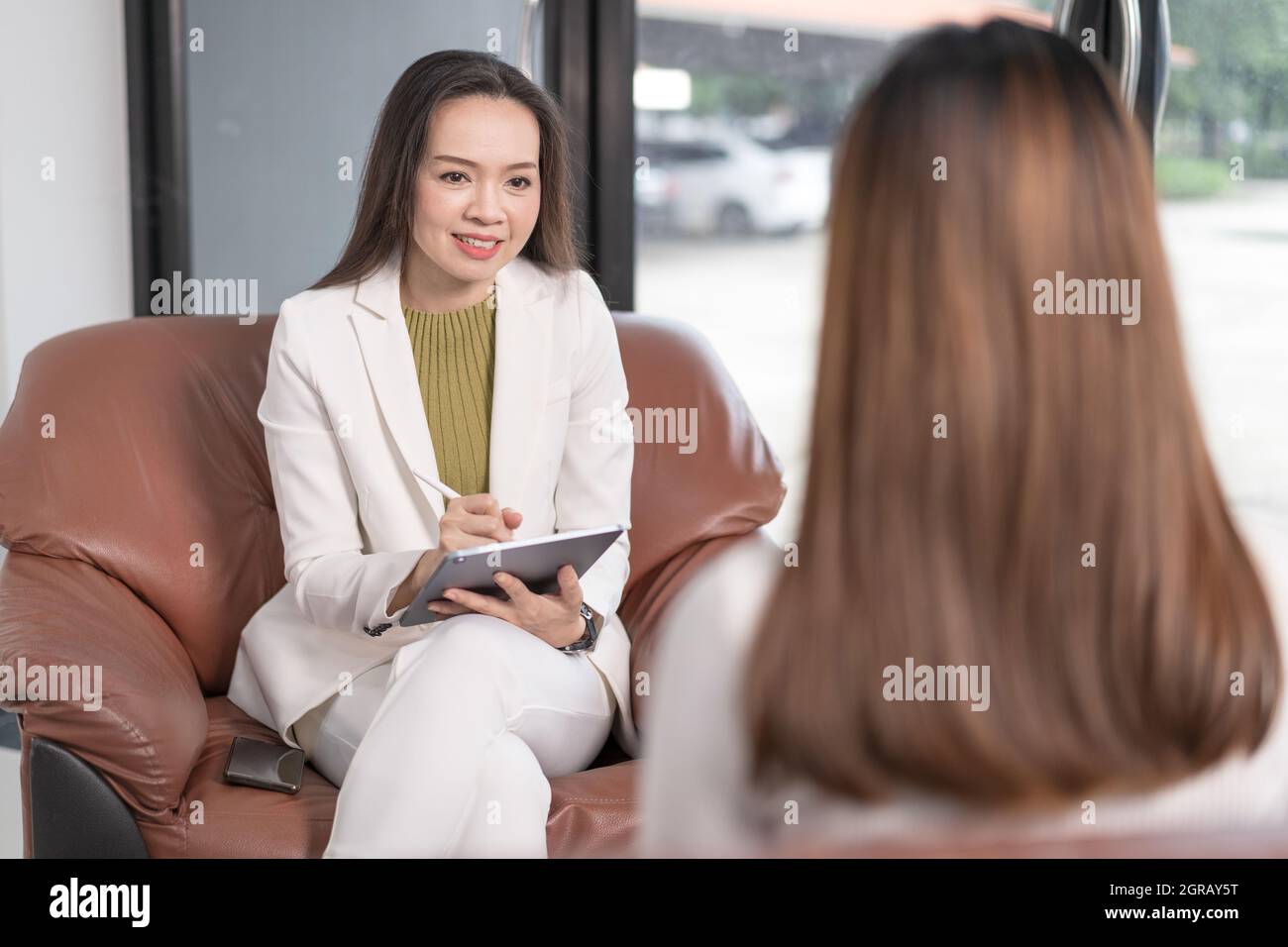 Female Southeast Asian psychologist doctor consults in a psychotherapy