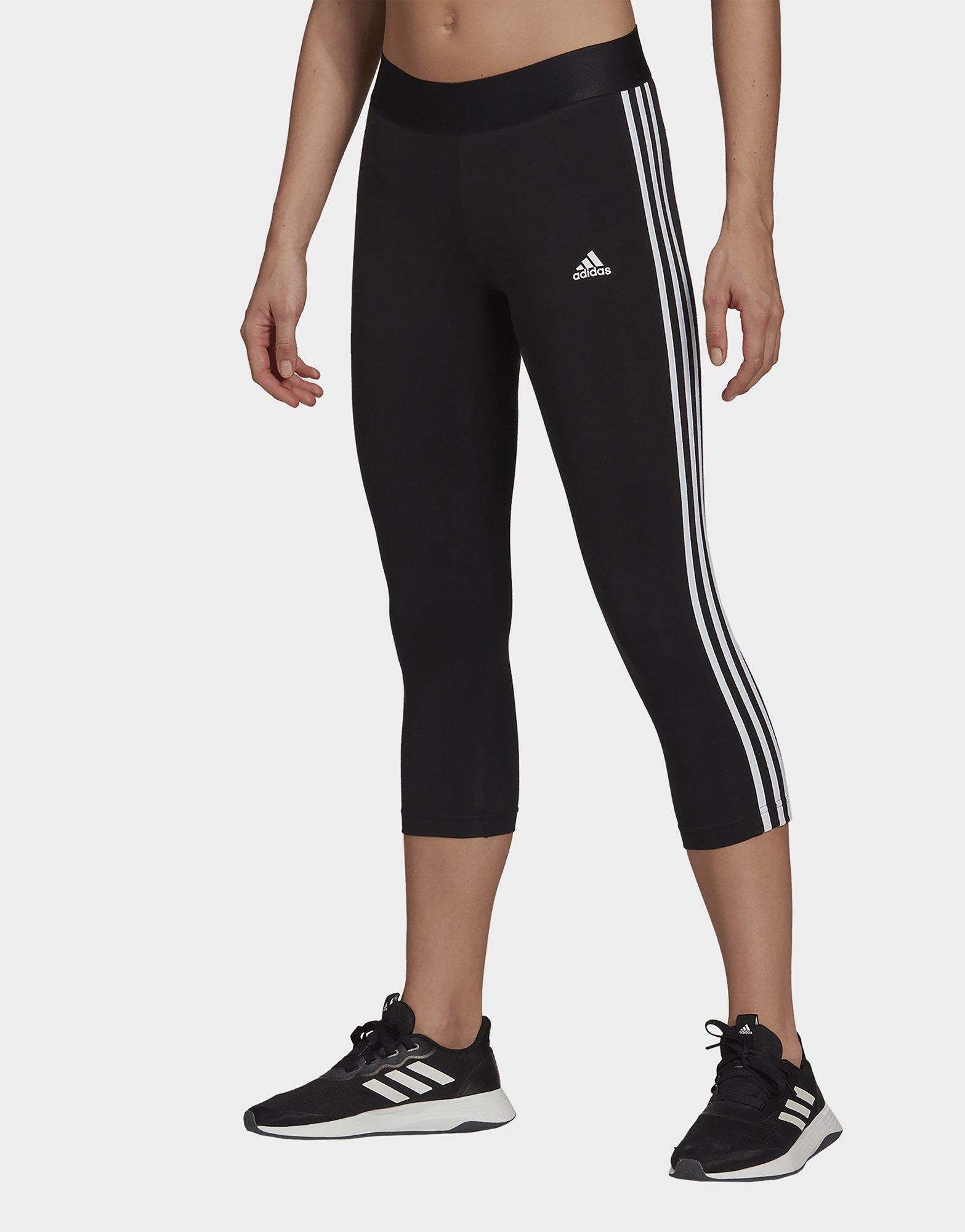 Black adidas Essentials 3Stripes 3/4 Length Leggings JD Sports UK