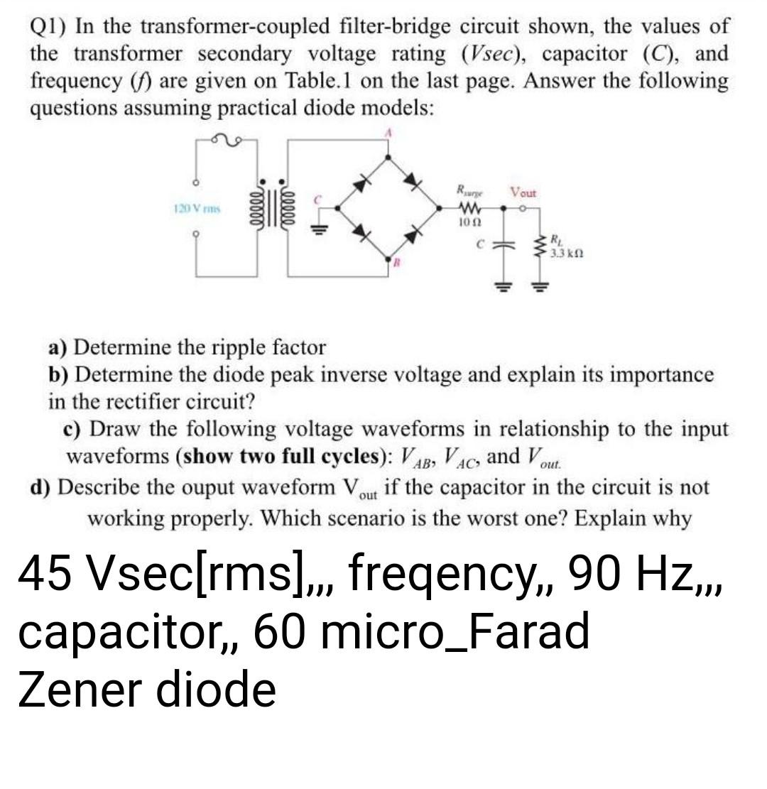 Solved Q1) In the transformercoupled filterbridge circuit Filter Bridge Circuit in this tutorial, a bridge rectifier made up of capacitor filter is explained. a bridge rectifier makes use of both halves and hence double efficiency; The residual ac ripples (before filtering) are very low in the output of a bridge rectifier. But it is not a flat dc output, so we need to. Four diodes are arranged here. Filter Bridge Circuit.