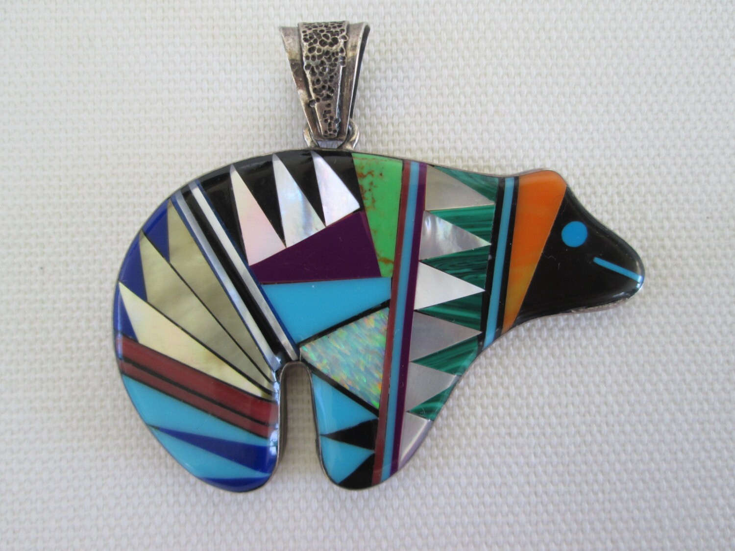 Amazing Double Sided Sterling Silver Zuni Bear Inlay Pendant Etsy Zuni Bear Jewelry This bear pendant was created by harold. check out our zuni bear necklaces selection for the very best in unique or custom, handmade pieces from our pendant. We have such a vast selection of authentic zuni jewelry, from necklaces. turquoise village functions as a liaison between admirers of handmade native american jewelry and crafts and the artists themselves.. Zuni Bear Jewelry.