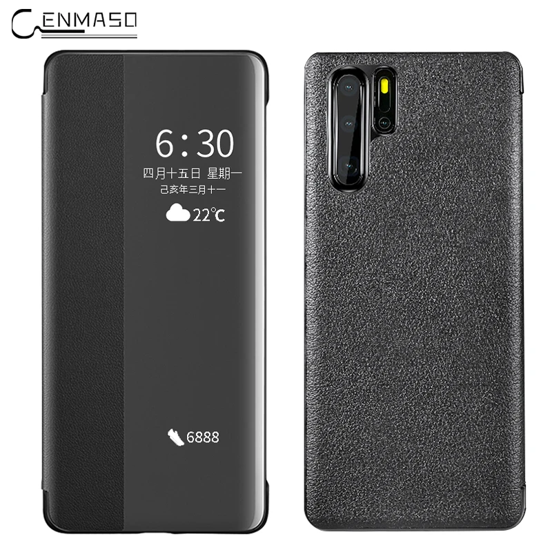 HUAWEI P30 Pro Case Luxury Genuine Leather Smart Window Automatic Wake