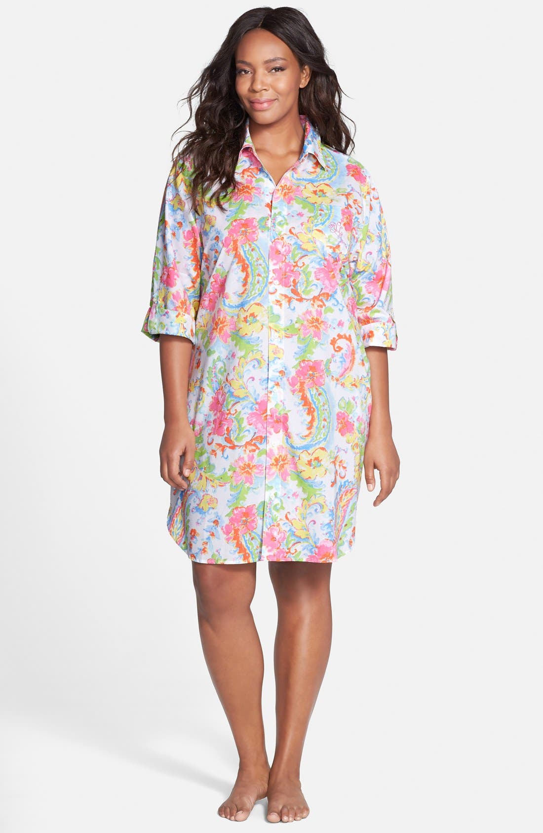 Lauren Ralph Lauren 'Goa' Roll Cuff Sleep Shirt (Plus Size) Nordstrom