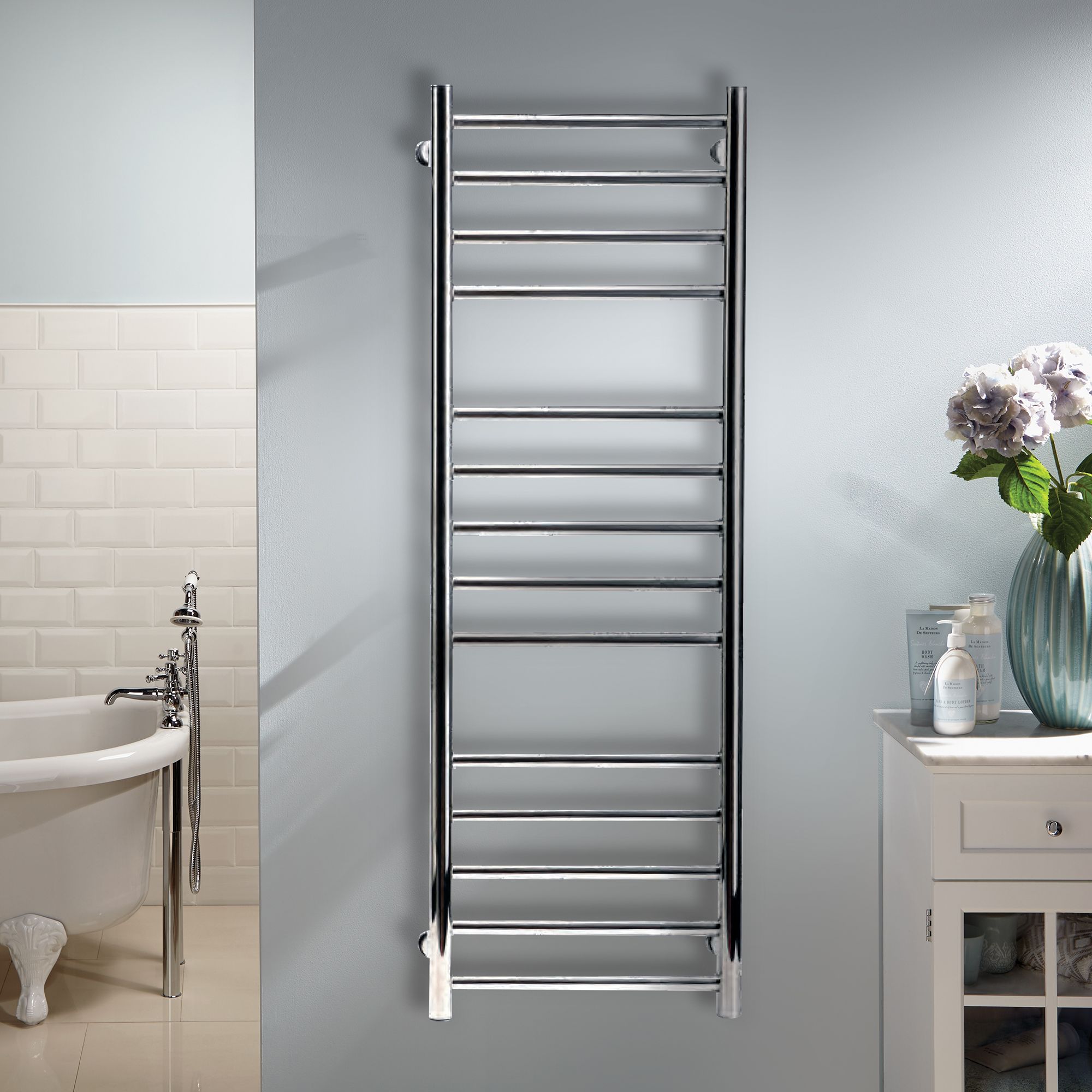 Heating Style Milton 75W Electric Silver Towel warmer (H)1000mm (W)500mm DIY at B&Q
