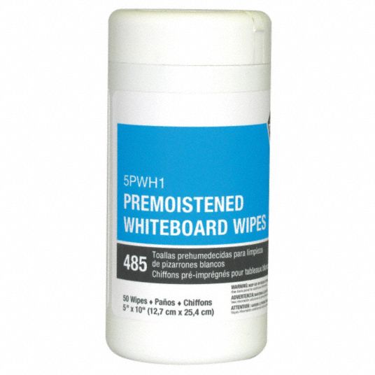 Dry Erase Board Cleaning Wipes, Removes Ghosting, Shadowing, Grease and Dirt, 5 x 10 in Grainger