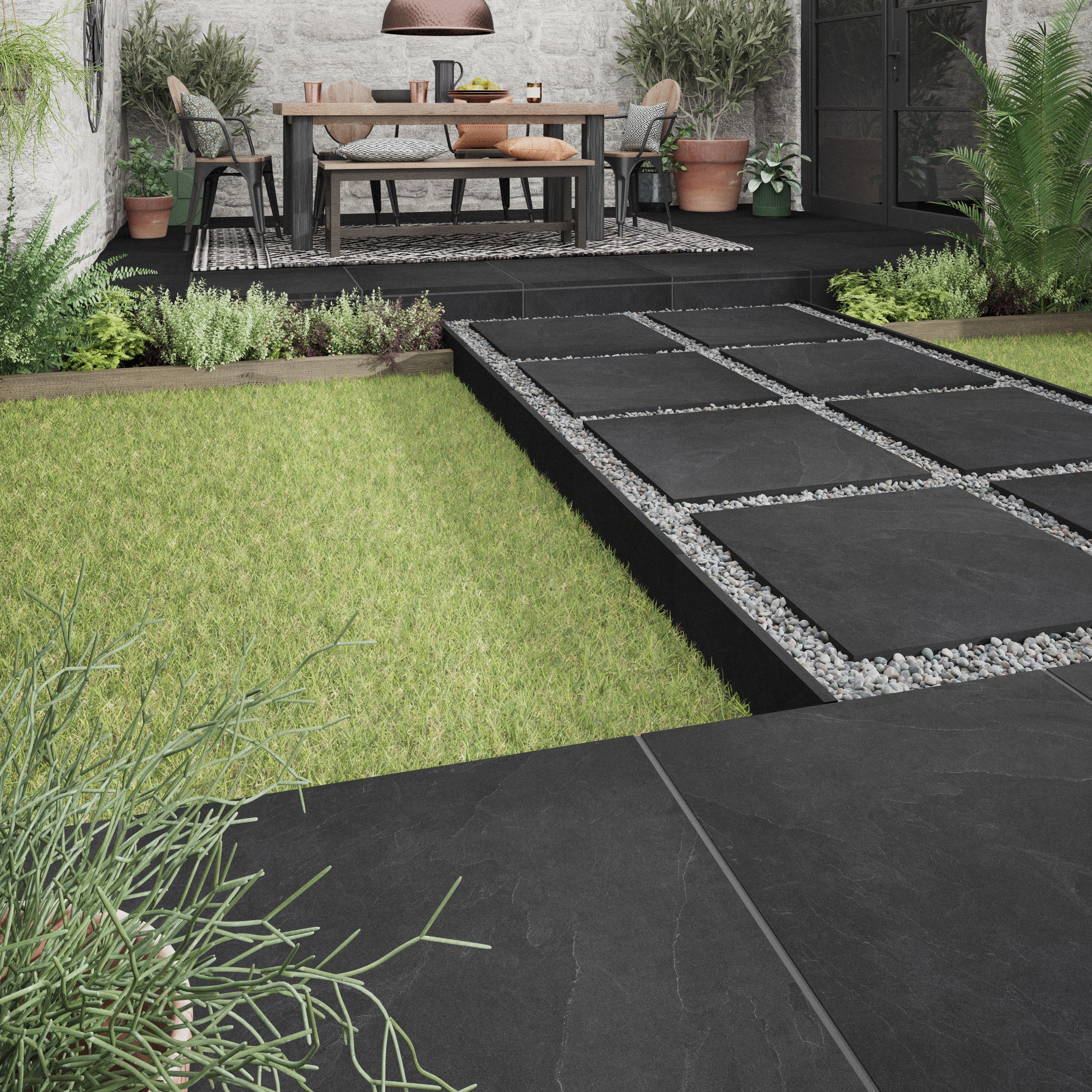 Slate Black Matt Stone effect Porcelain Outdoor Floor Tile, Pack of 2 Paint For Outdoor Floor Tiles Painting tiles allows you to breathe new life into your outdoor. — paint over the ceramic tile in a paint color of your choice. when painting outdoor tiles, it is important to use paint that can withstand the outdoor elements. to paint outdoor tiles, first, assess their condition and clean them thoroughly. A few different types of. Paint For Outdoor Floor Tiles.