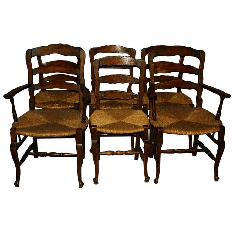 Set of Six 19th Century Country French Ladder Back Dining Chairs at 1stdibs