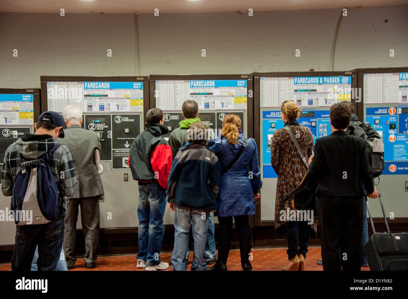 Passengers line up at the Washington DC subway ticket machines Stock Photo Alamy