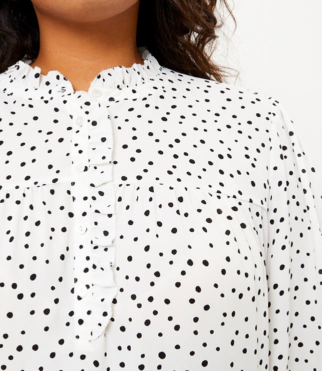 LOFT Plus Dotted Ruffle Mixed Media Blouse