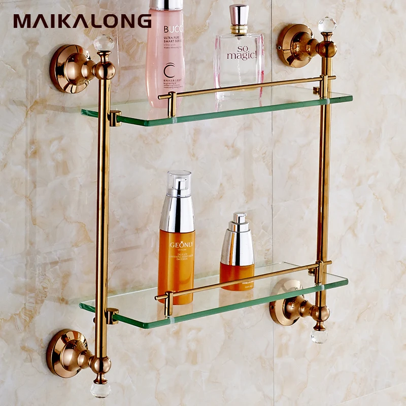 rose gold.Crystal & Brass Bathroom shelf double shelf Pure copper&glass