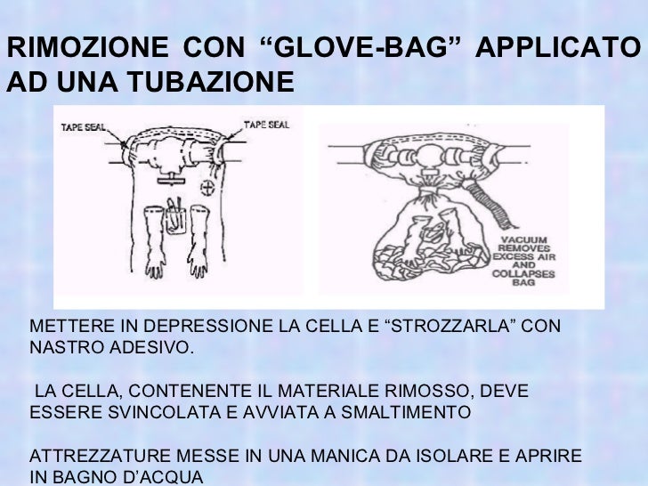 Asbestos Removal Glove Bags Clear Asbestos Bags Glove Bags Amianto Su tubazioni o valvole o. Sacos de guantes o glove bags. Bonifica di amianto friabile con tecnica dei glove bags. Nel caso di limitati interventi su tubazioni rivestite in amianto per la rimozione di piccole superfici di coibentazione (ad es. Interventi di semplice raccolta e allontanamento di materiali contenenti amianto in matrice compatta, per l’avvio alla discarica. Il più popolare. Glove Bags Amianto.