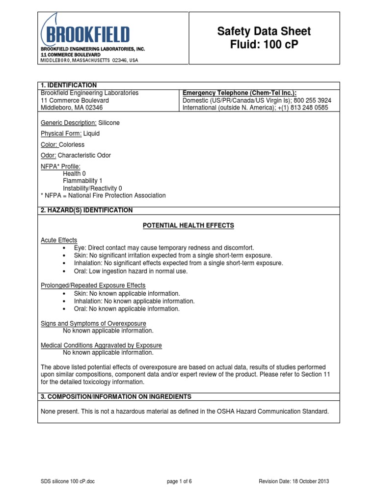 SDS Silicone 100 CP PDF Sewage Treatment Dangerous Goods