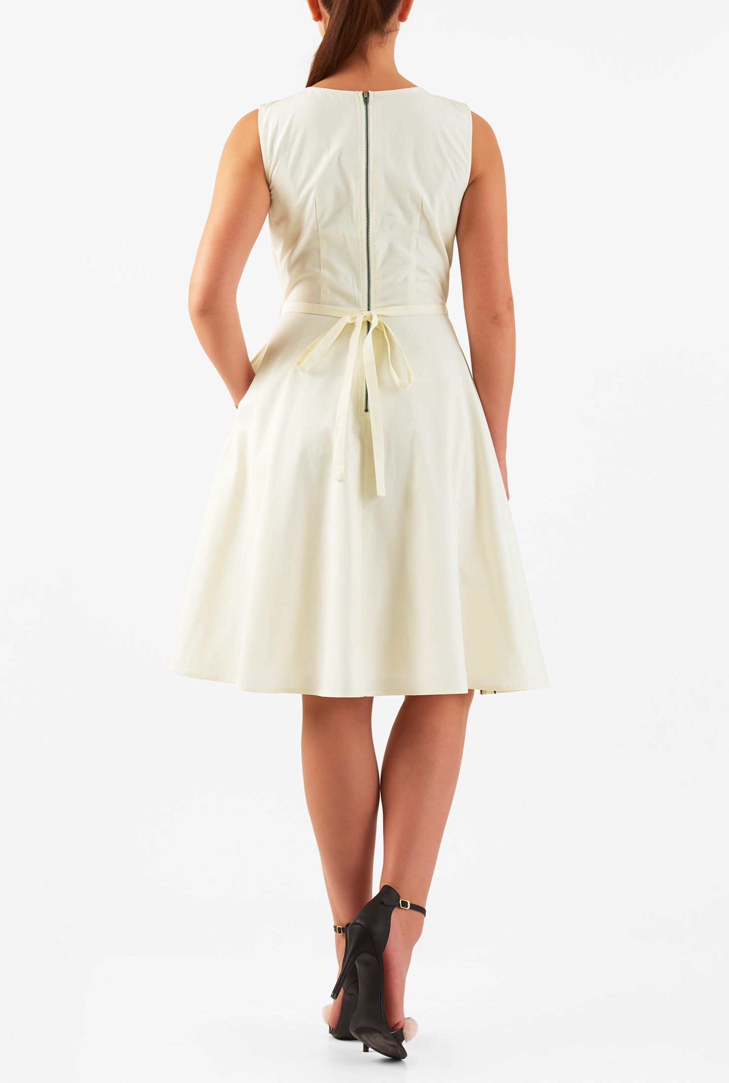 Shop Floral embellished pleat neck poplin dress eShakti