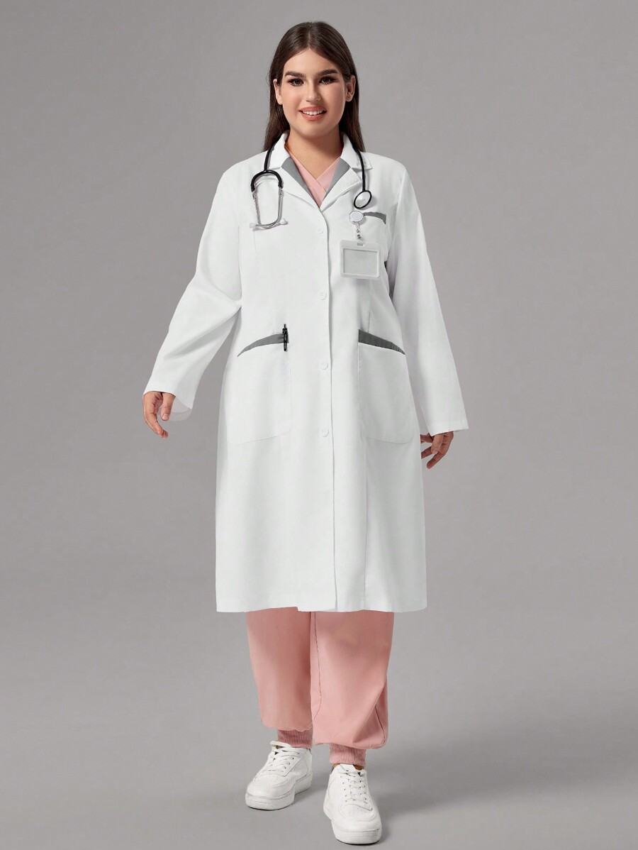 SHEIN TaskFit Plus Size Plain Front Button Pocket Long Sleeve Lab Coat White Lab Coat Dress Up A traditional lab coat reaches the knees to protect. Doctor lab coat for girls and boys doctor white unisex lab coat costumes, lightweight lab coat, halloween doctor dress up lab costume. The lab coat is a long white coat with great sized pockets and designed with comfortable and easy button up fastening,. This versatile kids white lab coat is made. White Lab Coat Dress Up.