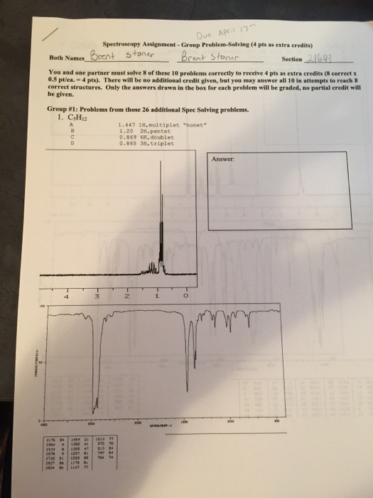 KEY HW 4 Spectroscopy Homework Assignment with Questions and Answers Spectroscopy Assignment Answers Learn how to solve ir spectroscopy problems by labeling functional groups and identifying compounds based on ir spectra. If you scored significantly less than 30 points, i would advise you to see your ta or the instructor to seek some help and get a better insight on ir. In this post we’re going to go through four (simple) practice problems. Spectroscopy Assignment Answers.