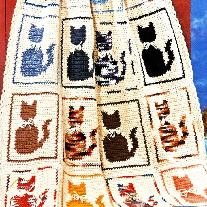 Purrfectly Pretty Afghan Vintage Crochet Pattern 197 Inspire Uplift