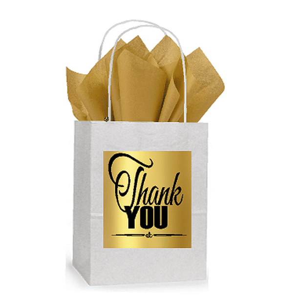 Thank You White and Gold Themed Small Party Favor Gift Bags Stickers