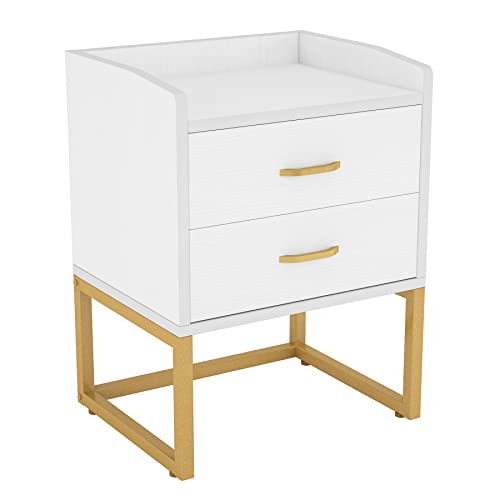 Tribesigns White and Gold Nightstand, Modern Night Stands Bedside Table
