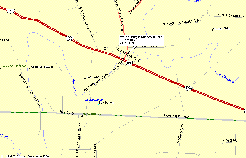 Map of Fredricksburg Public Access Point on Blue River in Indiana