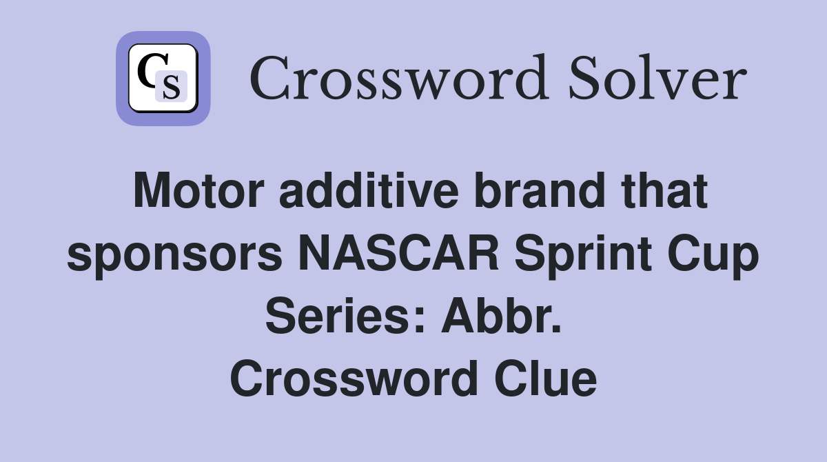 Motor additive brand that sponsors NASCAR Sprint Cup Series Abbr Motor Oil Letters Abbr Crossword It was last seen in american quick crossword. Did you find the answer for motor oil letters: To go back to the main post you can click in this. the crossword solver found 30 answers to motor oil letters abbr., 3 letters crossword clue. crossword answer for motor oil abbr.: The crossword solver finds answers. here are. Motor Oil Letters Abbr Crossword.