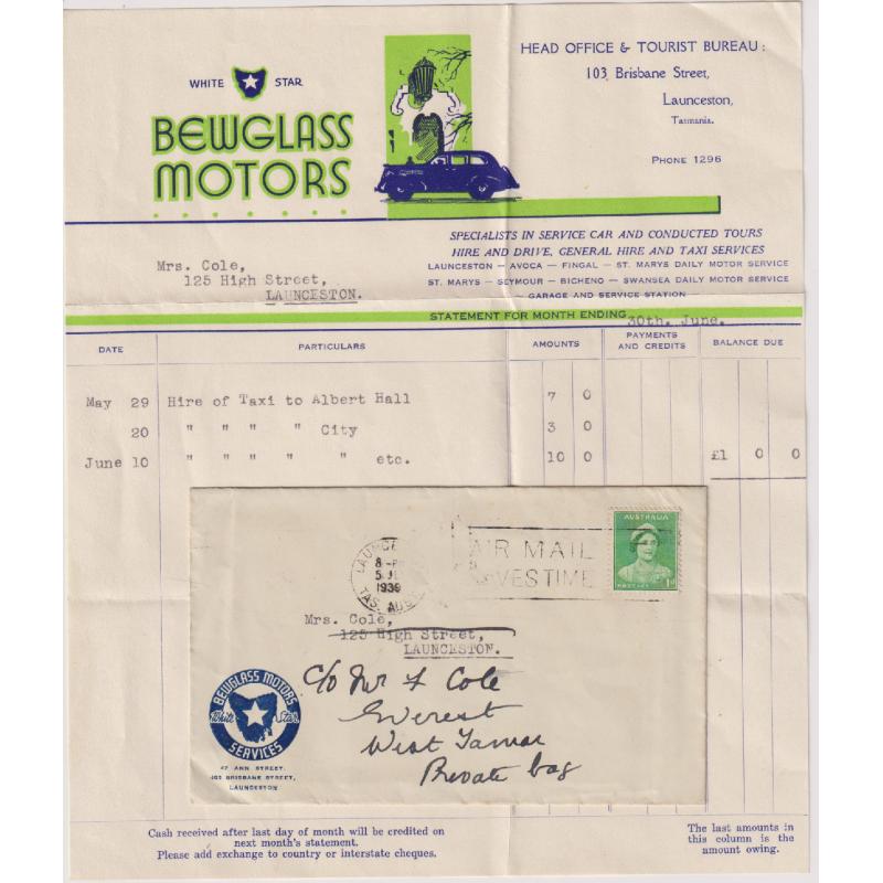 (BB1067) TASMANIA · 1939 BEWGLASS MOTORS (Launceston) advertising