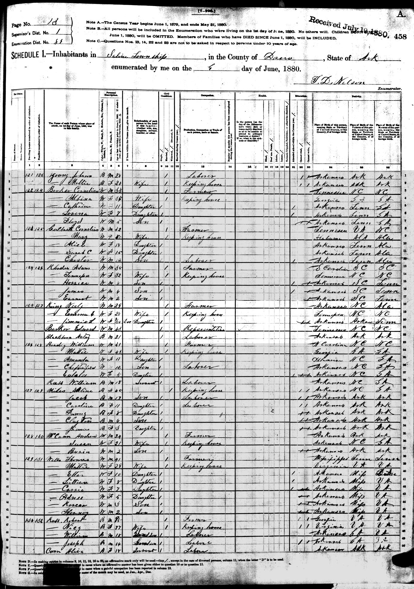 Documents 1880AR Census, Saline, Drew Co, AR AdkinsHorton Family