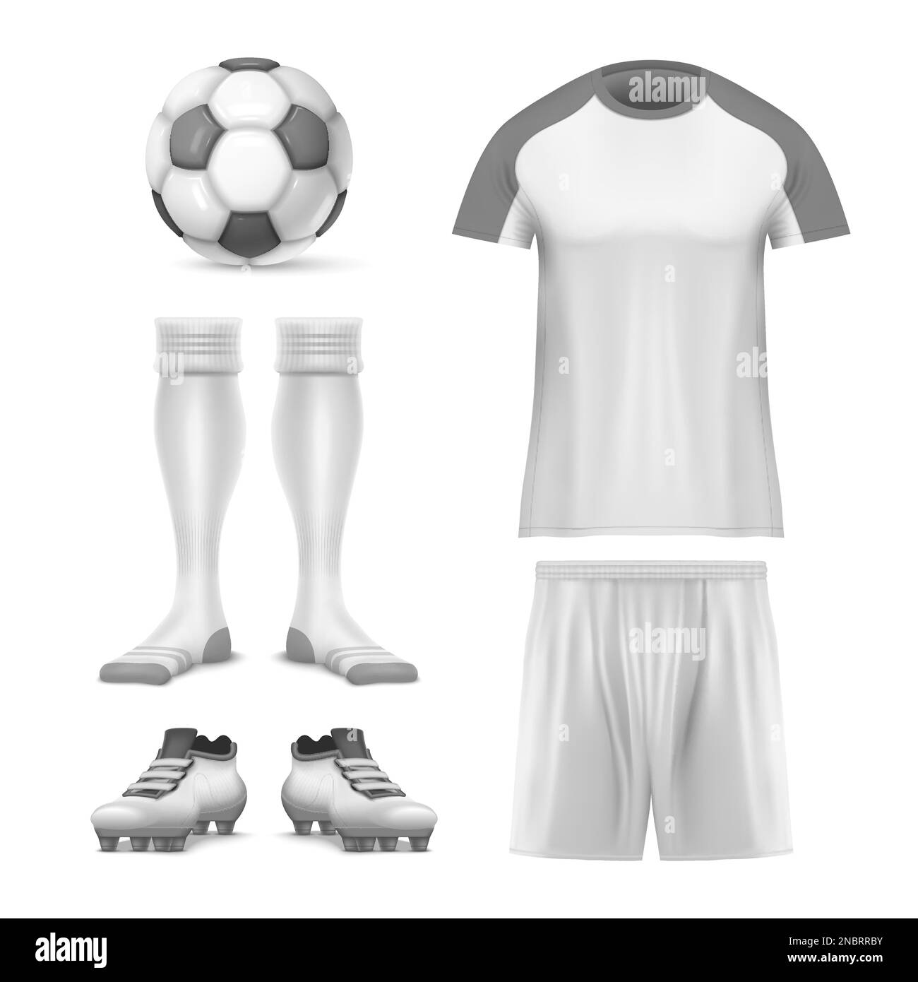 Icono de maqueta de fútbol realista conjunto de uniformes y atributos