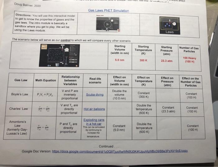 Solved too low affect Doug Balmer, 2020 Gas Laws.PhET