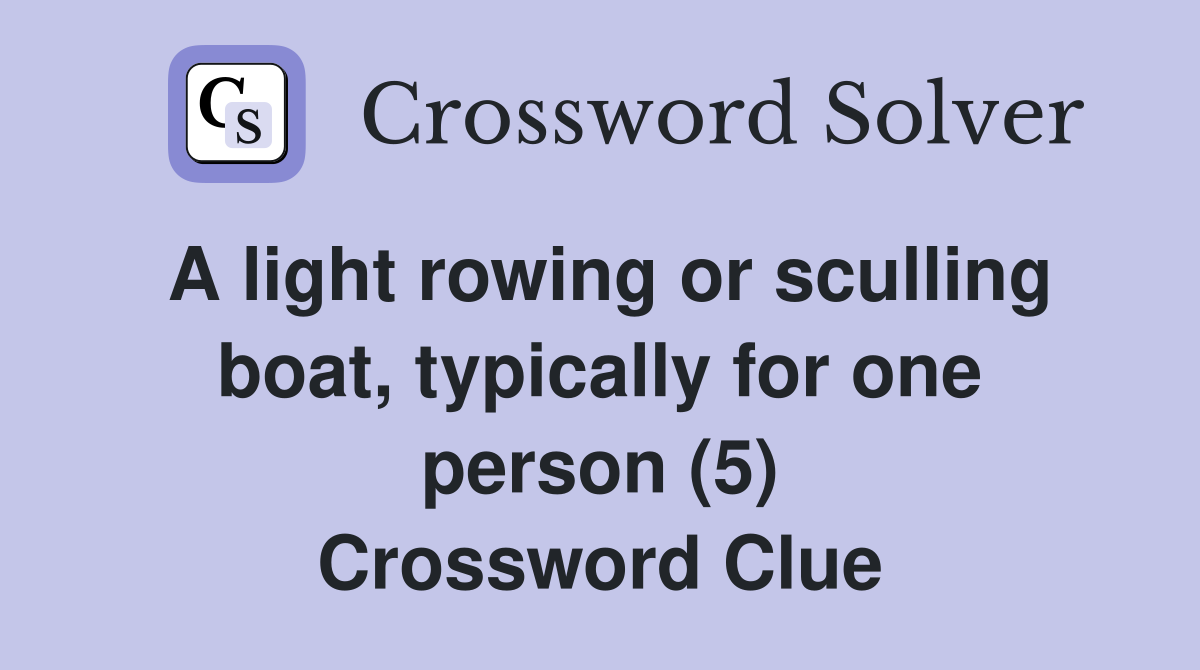 A light rowing or sculling boat, typically for one person (5) Crossword Clue Answers Rowing Boat For One 5 Letters We found 40 solutions for a light rowing or sculling boat, typically for one person (5). The crossword solver found 30 answers to a rowing boat for one, 5 letters crossword clue. Ny times, daily celebrity, telegraph, la times and more. We have found 40 possible answers for this. We know 1 solutions for: Click here to teach me more. Rowing Boat For One 5 Letters.
