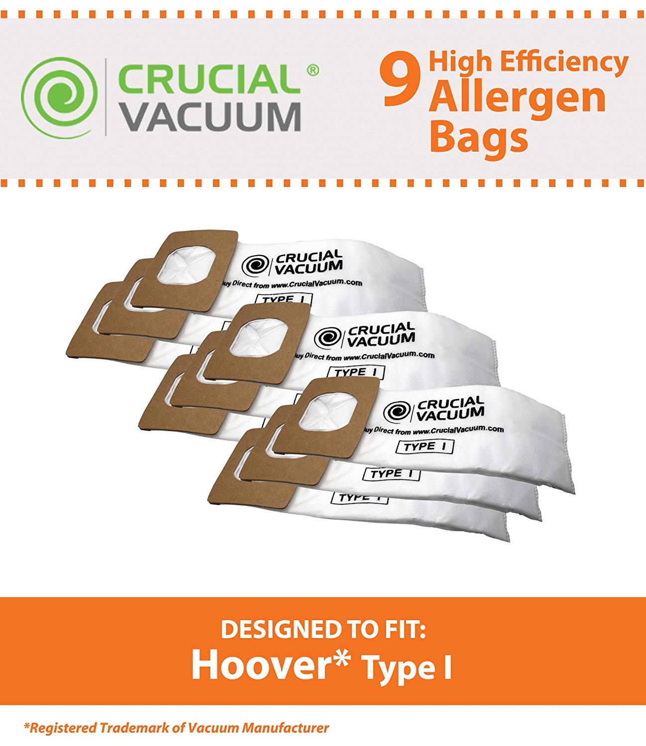 9 Hoover Type I Allergy Filtration Vacuum Cleaner Bags, Compare to
