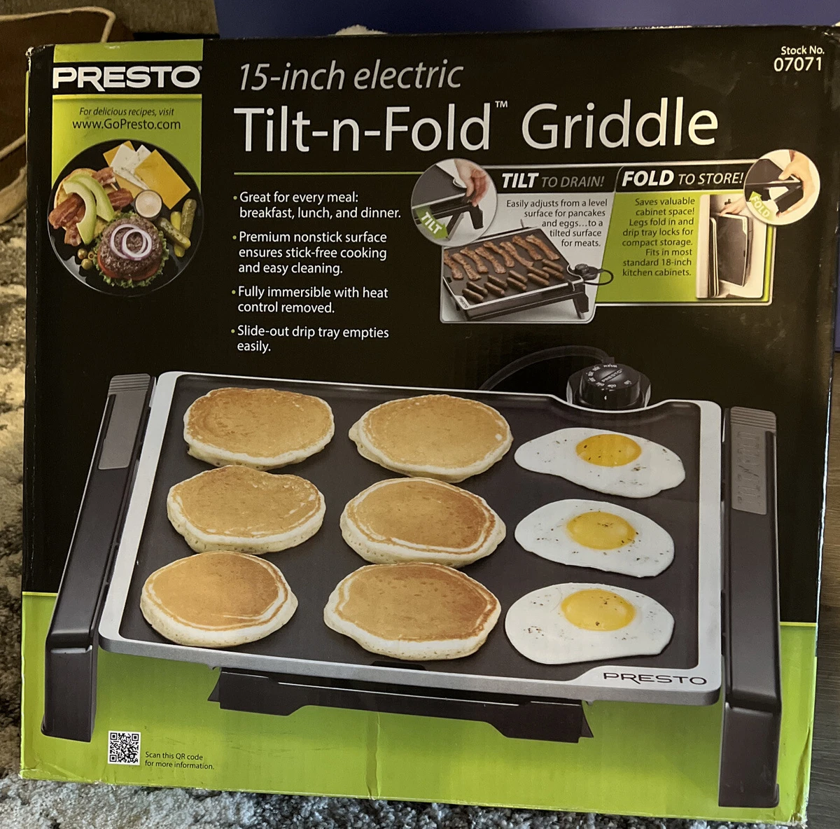Presto 07046 Tilt 'n Drain Big Griddle CoolTouch Electric Griddle Presto Electric Griddle It has a control master heat control, a. presto 07047 cool touch electric griddle. buy a large and durable nonstick griddle with. Special textured ceramic cooking surface provides enhanced nonstick performance and. Presto Electric Griddle.