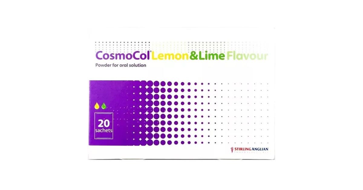 CosmoCol Lemon and Lime Pack of 20 Cosmocol Sachets For Baby This medicine is used to treat: Starting dose of 2 sachets daily. Find out how macrogol treats constipation and how to take it. Adjust dose as required to produce regular, soft stools. Cosmocol paediatric is a laxative. Children aged 7 to 11 years: Adjust dose as required to produce regular, soft stools. Although laxatives are recommended to treat constipation there. Cosmocol Sachets For Baby.
