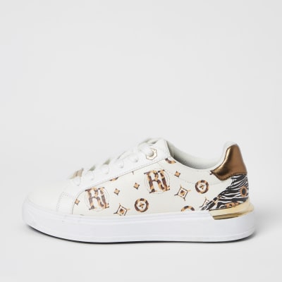 Cream RI printed laceup trainers River Island
