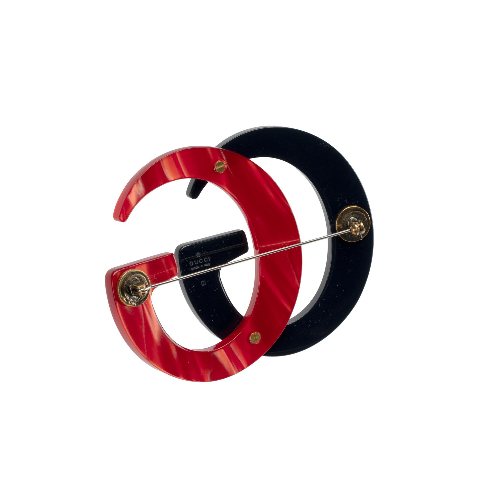 Gucci Resin Brooch Red and Black For Sale at 1stDibs