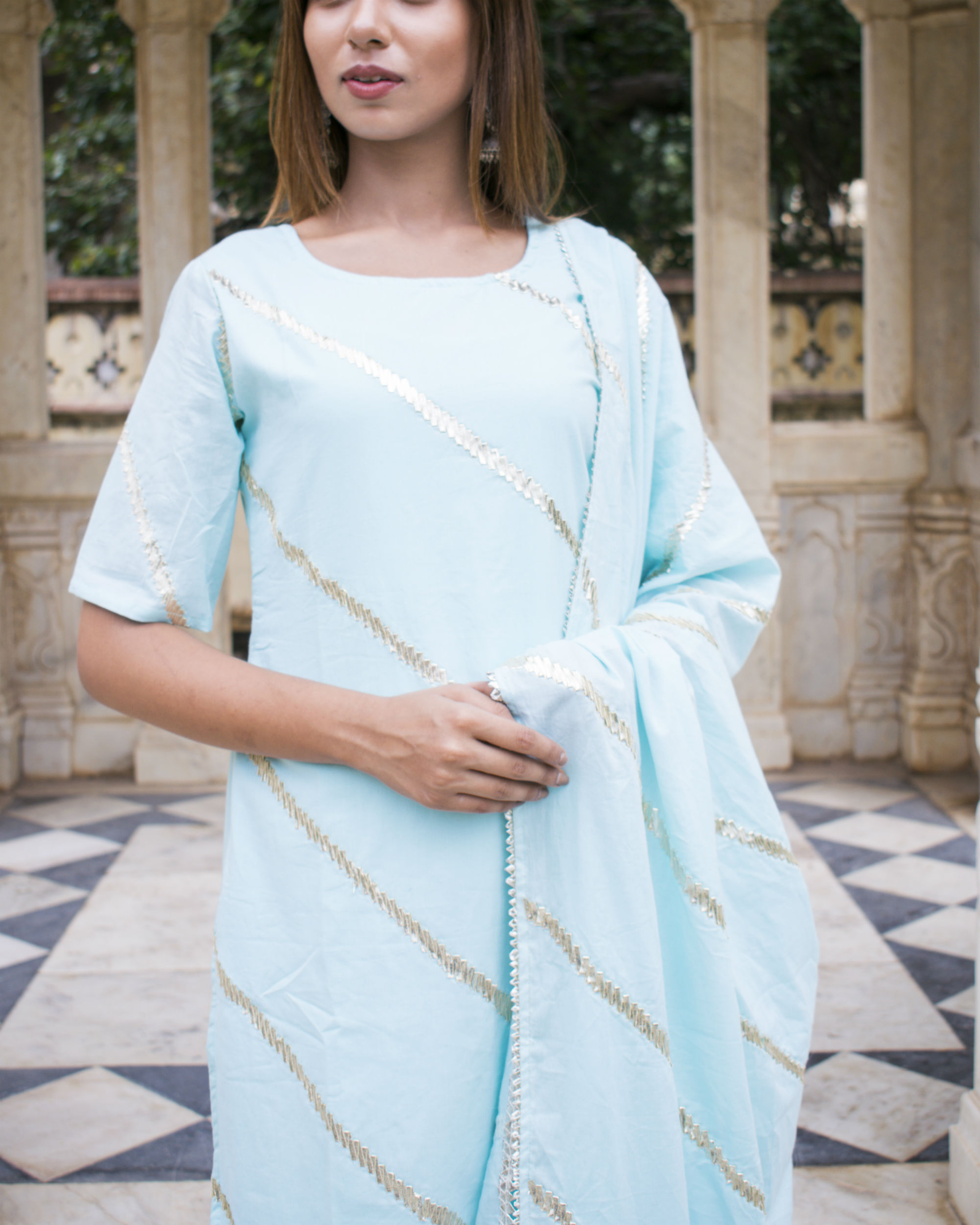 Powder blue gota suit set by Chokhi Bandhani The Secret Label
