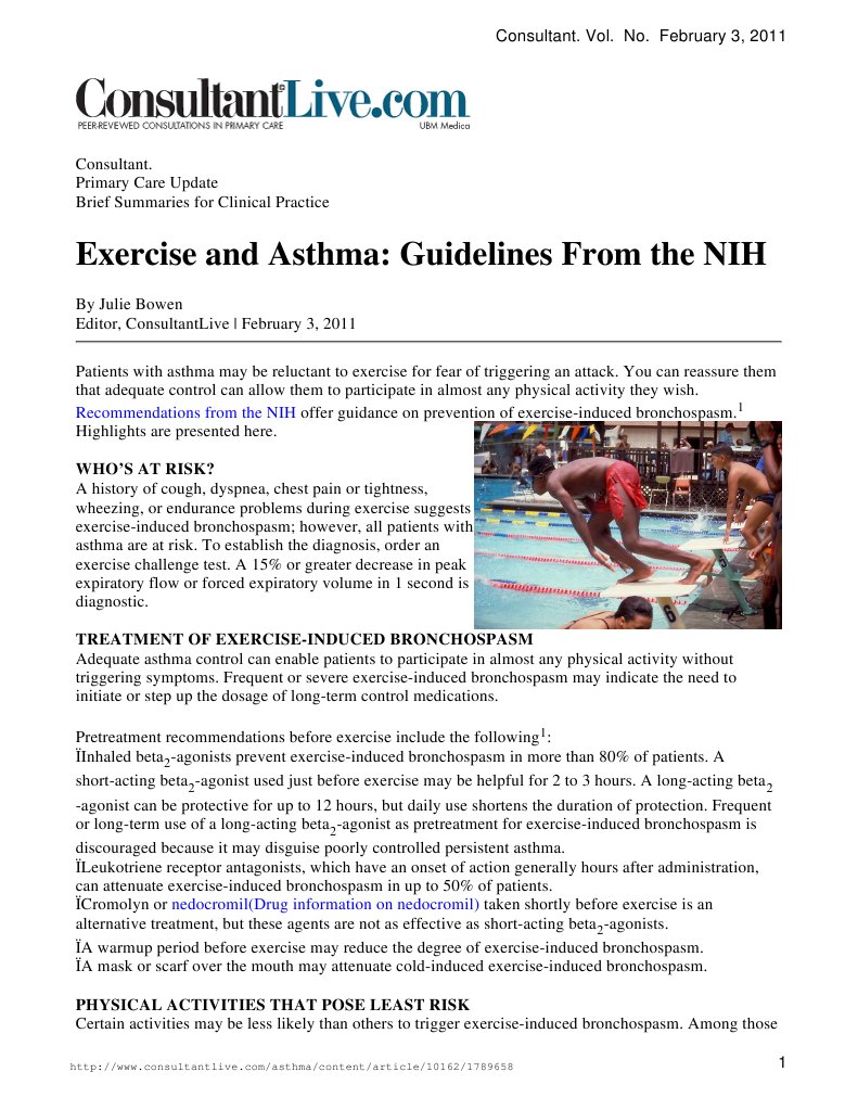Exercise and Asthma Guidelines From the NIH Asthma Clinical Medicine