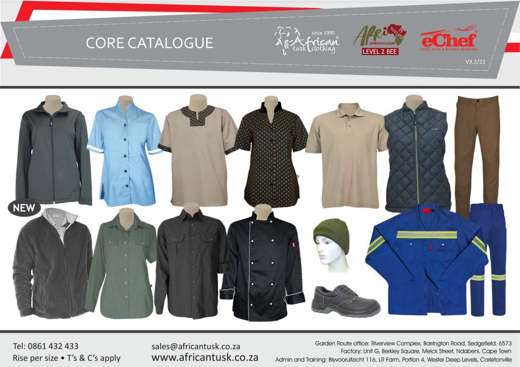 to African Tusk Clothing African Tusk Clothing, Afri Uniform & Chef and eChef Afri Uniform & Chef Johannesburg We have 30 years experience in. Xcellent service & individual advicevalue & quality garmentsextensive & complete uniform rangewide range of fabrics to suit your climate &. Our range includes chef jackets, trousers, aprons, accessories,. Get your salt clothing delivered to your door, anywhere in south africa at affordable. Our range includes functional hotel uniforms, lodge management and housekeeping garments, workwear. Afri Uniform & Chef Johannesburg.