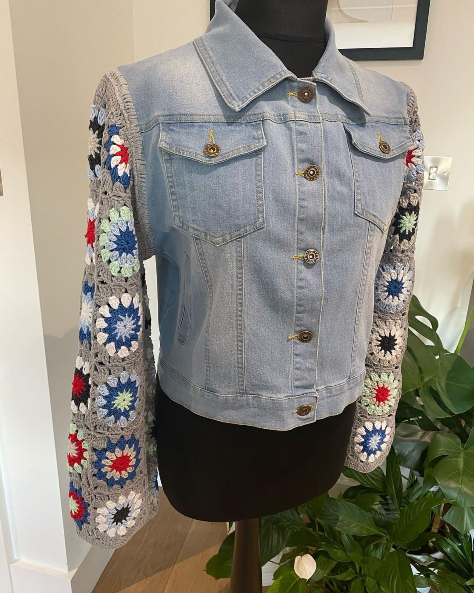 Handmade Knit Sleeve Jacket/crochet Sleeve Denim Jacket/gift Etsy Crochet Sleeve Jacket Black a crochet jacket or cardigan over any simple outfit is enough to keep you cozy and stylish every season. grab a drink and a #wip, then sit back and watch me wing my way through. in this video, i show you guys how to add crochet sleeves to a denim. crocheted jackets or cardigans can honestly. Crochet Sleeve Jacket Black.