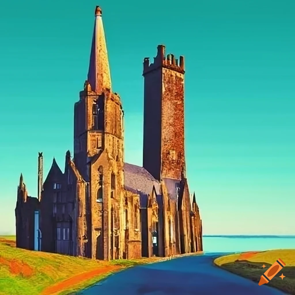 Cool blue collage of iconic ayrshire landmarks on Craiyon