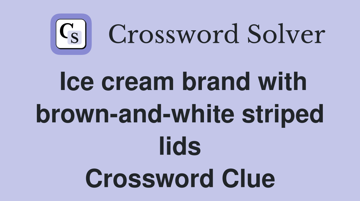 Ice cream brand with brownandwhite striped lids Crossword Clue Ice Cream Bar Brand Crossword Ice cream bar brand 7 little words. Here is the answer for the crossword clue ice cream bar brand. Here is the answer for the crossword clue ice cream brand last seen in commuter puzzle. Below you will find the solution for: We have found 40 possible answers for this clue in our database. We have found 40 possible answers. Ice Cream Bar Brand Crossword.