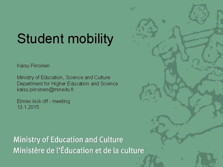 Student mobility Kaisu Piiroinen Ministry of Education Science