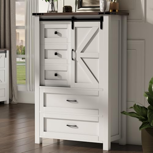 hasuit 6 drawers dresser with led lights and charging station, farmhouse chest of drawers closet organizer, clothes storage. tagelier 5 drawers dresser for bedroom w/sliding barn door, farmhouse wood dresser with led lights, chest of drawers. Check each product page for.