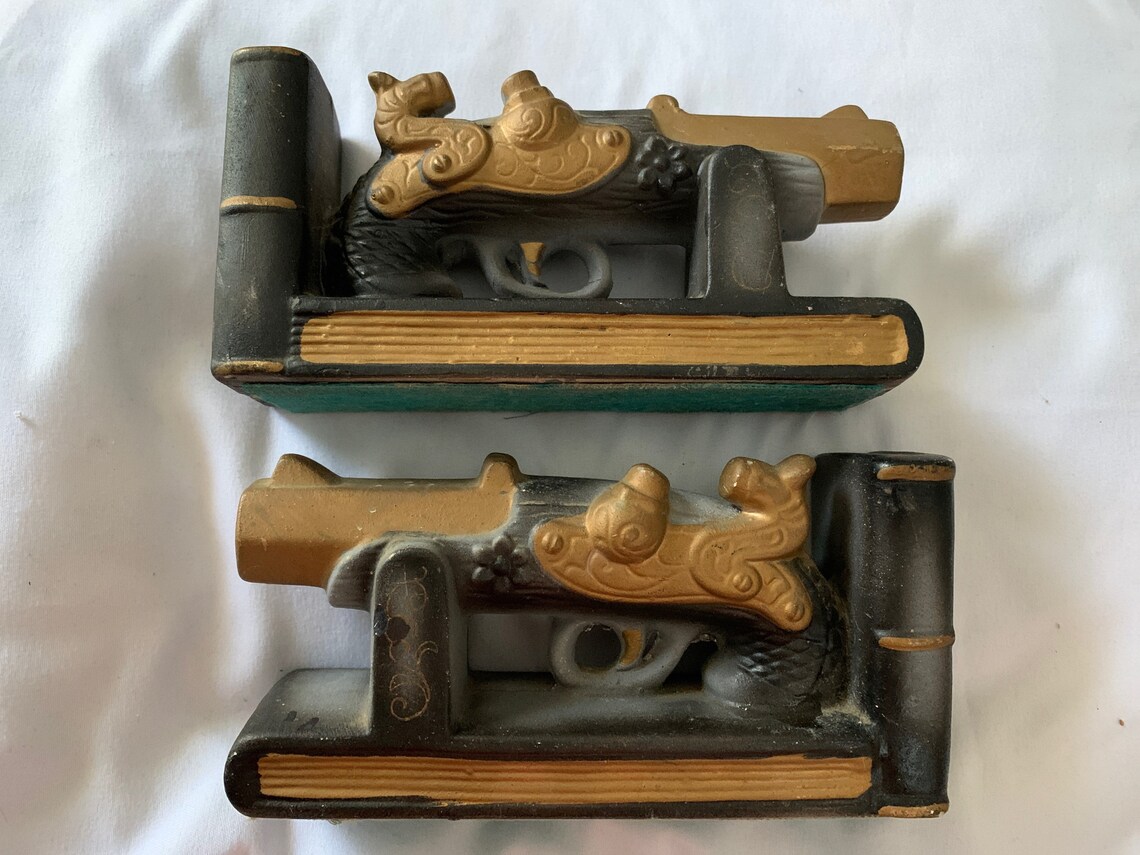 Vintage Pistol Bookends on Bookends, Vintage, Pistol Gun Book Ends Vintage brass cast iron cannon gun on wood bookends book ends. {delay:300} sponsored sponsored sponsored sponsored sponsored sponsored sponsored. These bookends are handmade to order using the finest plaster of paris with. Medallion of a fireman hat state farm fire and casualty co Check out our military bookends selection for the very best in unique or custom, handmade pieces from. Gun Book Ends.