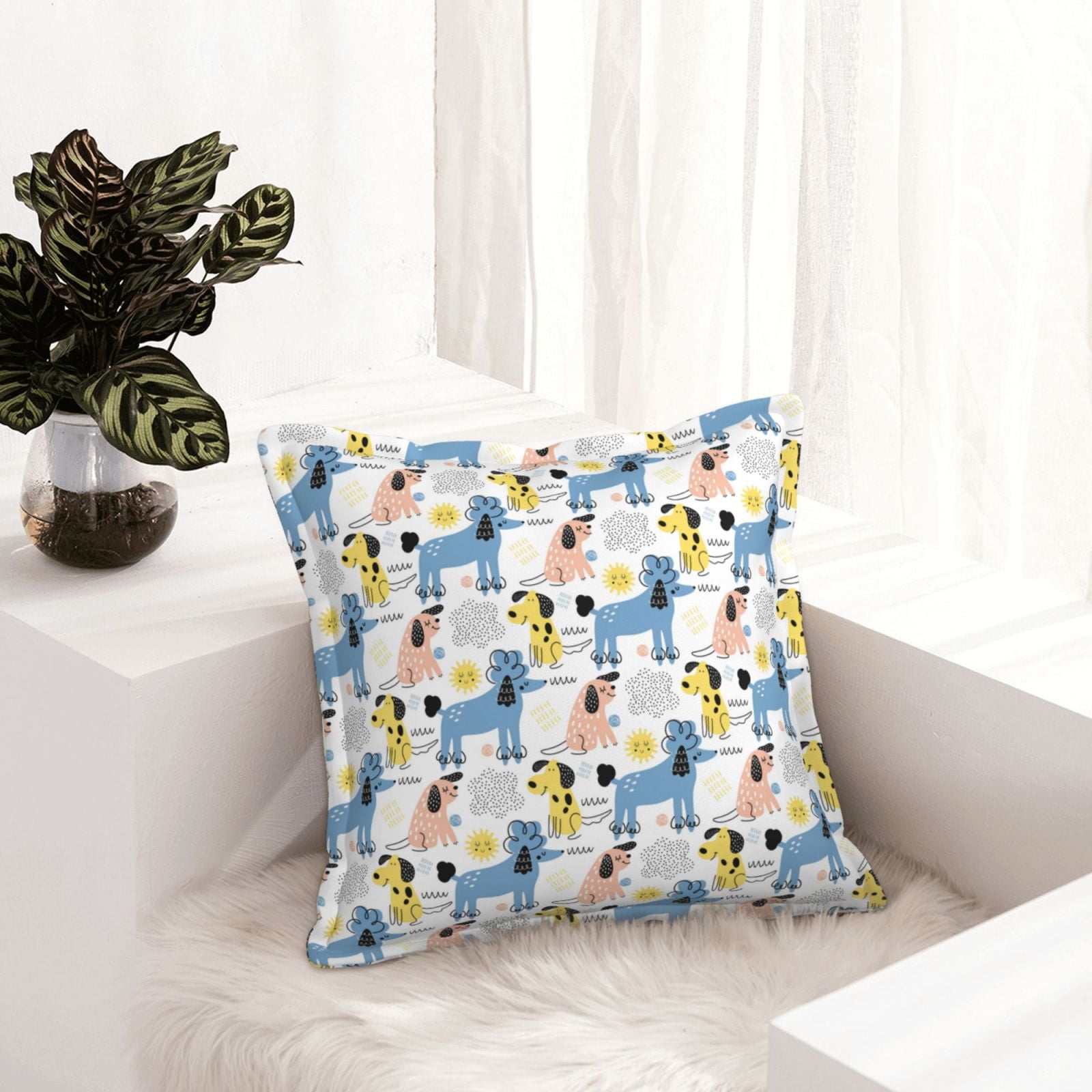 Bohemian Funny Cute Poodle Dog Leather Throw Pillow Covers, Pillow
