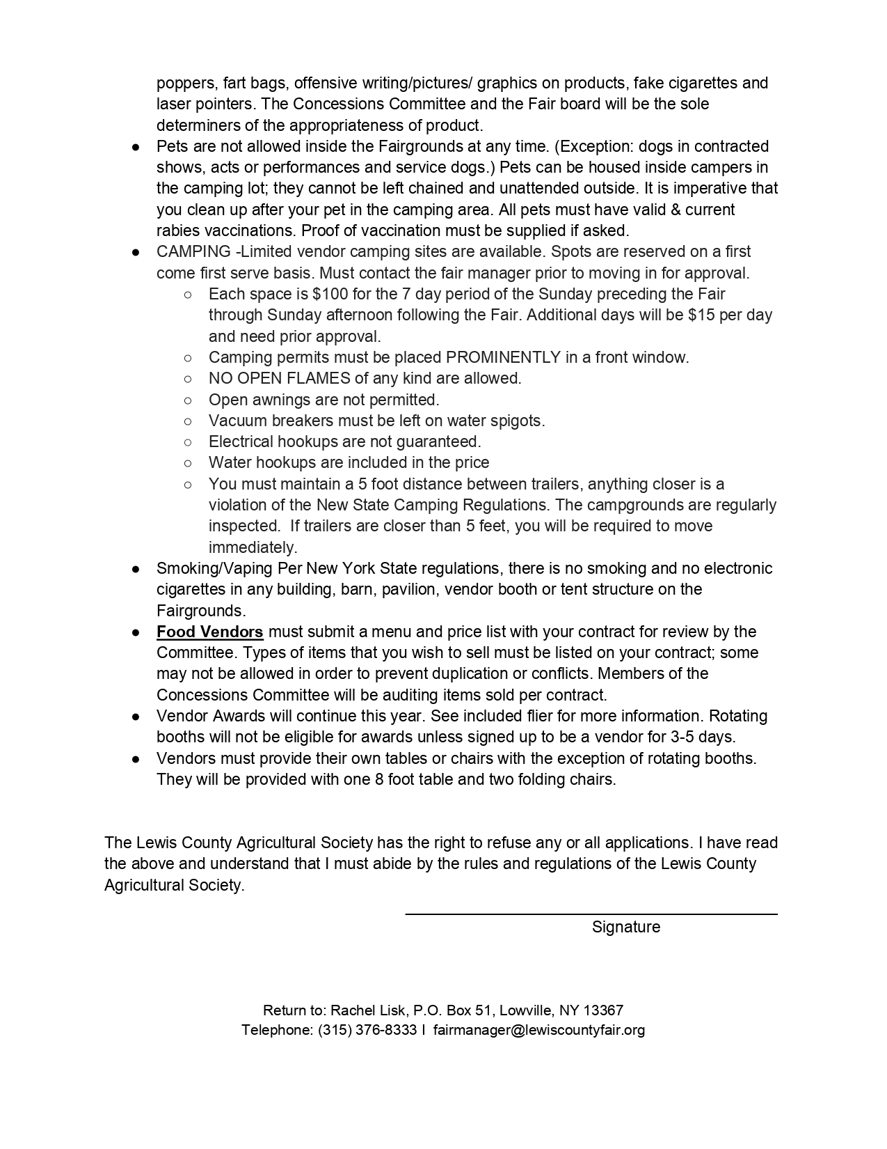 Vendor Rules & Regulations Lewis County Fair