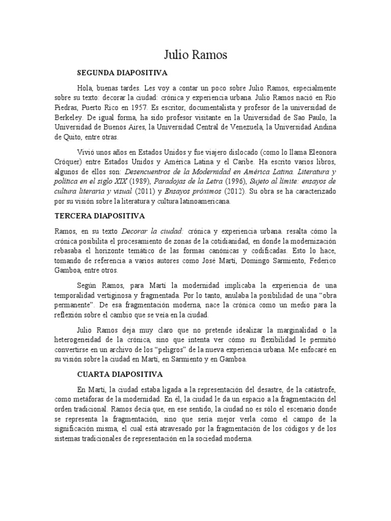 Exposición de Ramos PDF Modernidad America latina