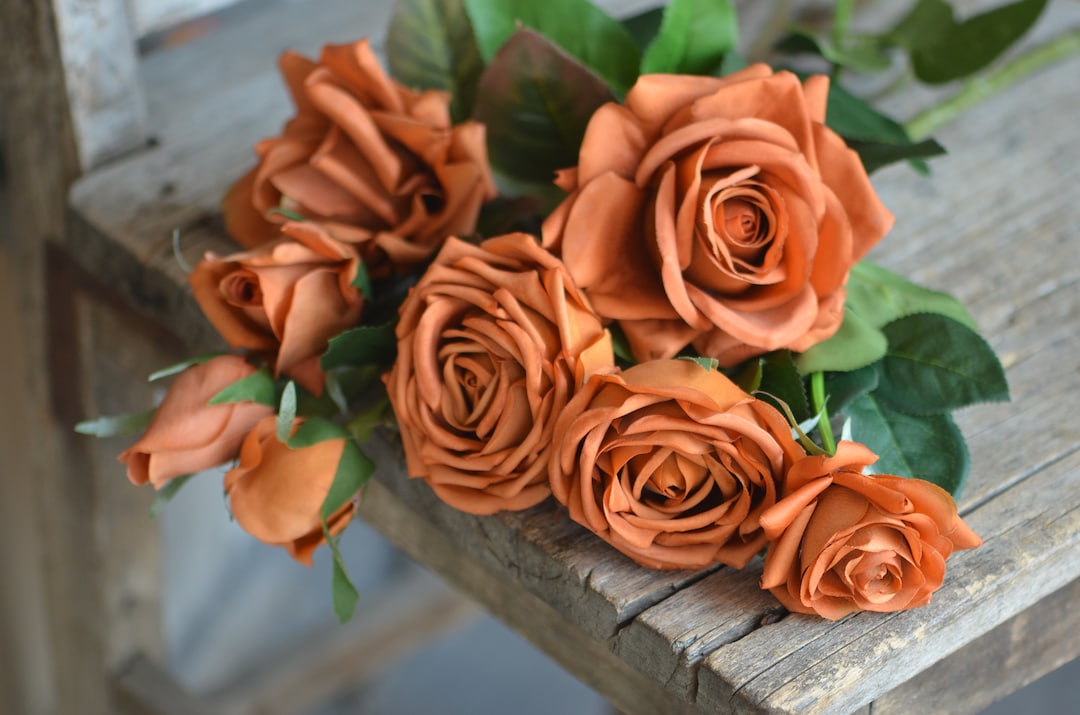 Terracotta, Toffee Real Touch Roses, Burnt Orange Fake Artificial Roses