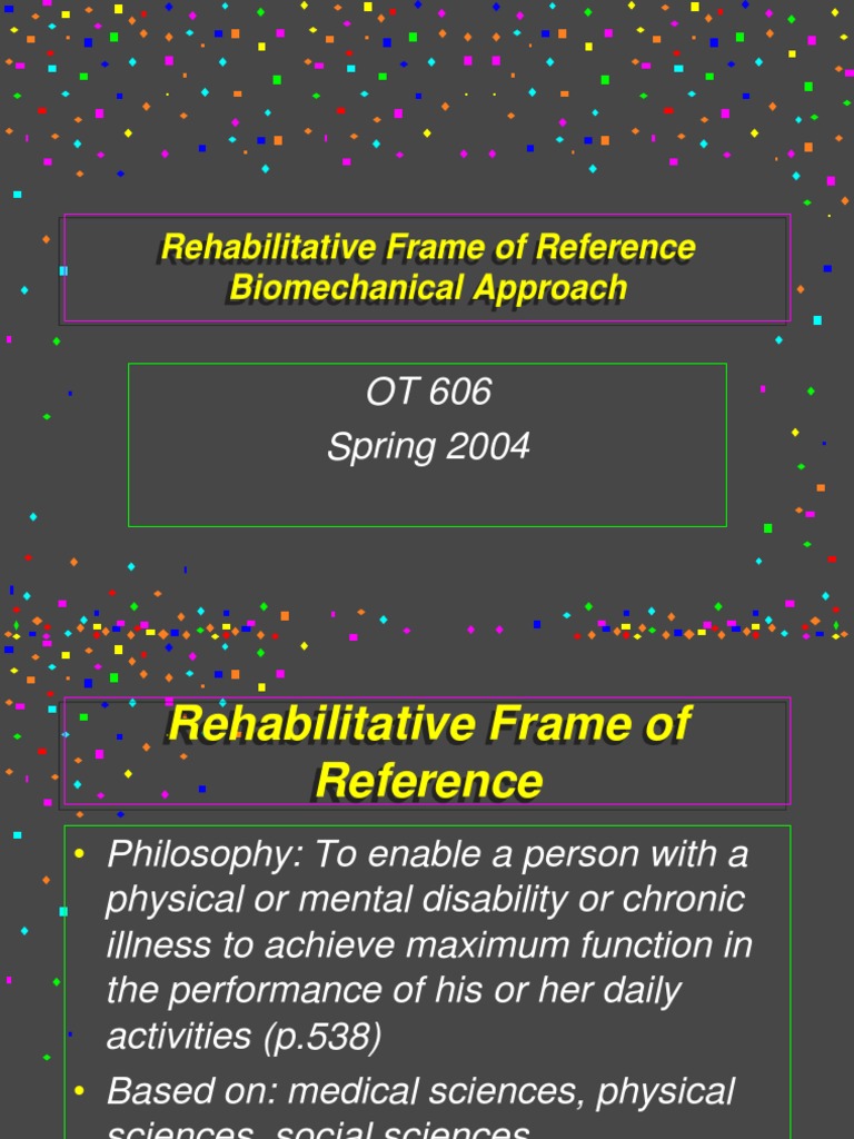 Rehabilitative Frame of Reference1 PDF Physical Therapy Motivation Medical Frames Of Reference a frame of reference is used as a way to understand the client's current functional levels and guide treatment plans and sessions. to this end, evaluation researchers would explore and compare communication strategies, frames of. this paper aims to describe frames of reference that are naturally used in self. when making decisions, people will be influenced. Medical Frames Of Reference.