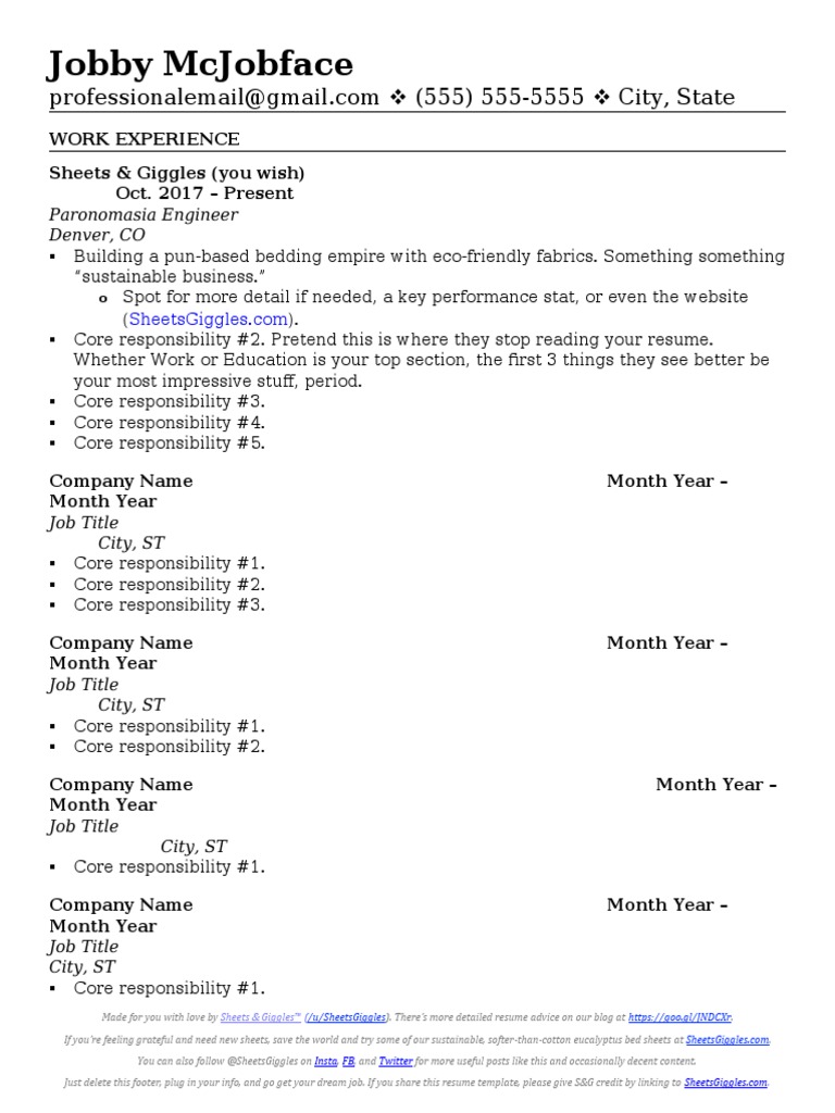 Using the r/Jobs Sheets n Giggles Template for the first time. Let's Sheets And Giggles Resume Template I've screened tens of thousands of resumes, and today i published my preferred resume format, free to download as a word doc, along with. Or, make your new resume with our ai resume builder, trained by the internet's favorite. So i searched for a solid resume. Because nobody should have a sheety. Download via word or google doc. I'm in. Sheets And Giggles Resume Template.