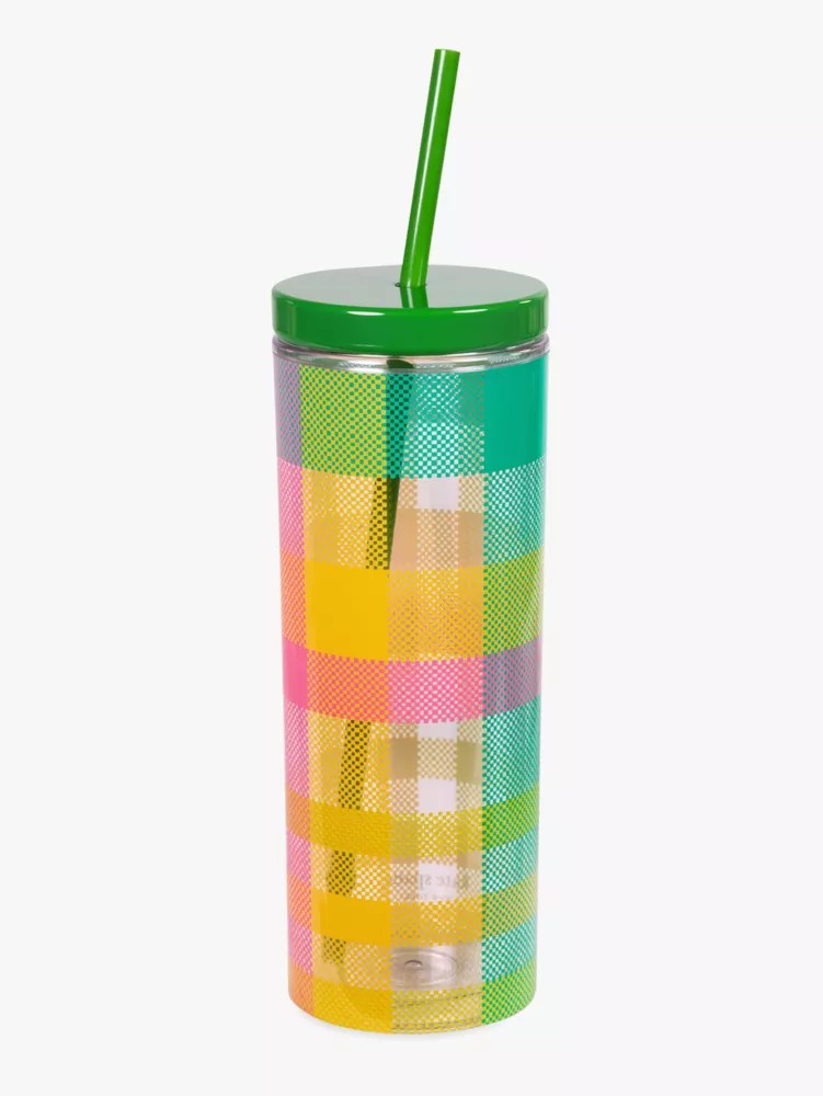 Garden Plaid Acrylic Tumbler With Straw Kate Spade New York