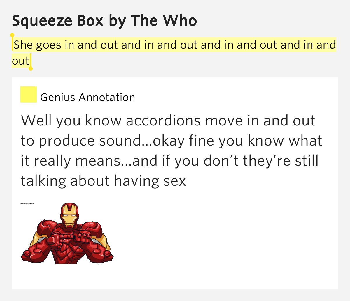 She goes in and out and in and out and in and out.. Squeeze Box